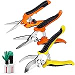 3 Pack Garden Pruning Shears Stainless Steel Blades Handheld Pruners Set with Gardening Gloves