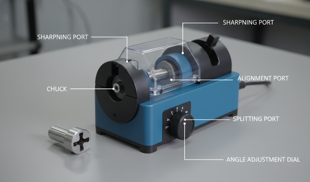 To understand how to use a drill doctor, you first need to speak the language. Here are the four parts you will interact with most: